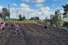 Укучылар мәктәп бакчасында көзге уңышларны җыйдылар, киләсе ел уңышына нигез салдылар.