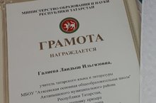 Татар теле һәм әдәбияты укытучысы Галиева Ландыш Илгиз кызы татар әдәбиятыннан республикакүләм олимпиаданың йомгаклау этабында призер укучы әзерләгән өчен Фән һәм мәгариф министырының грамотасы белән бүләкләнде.