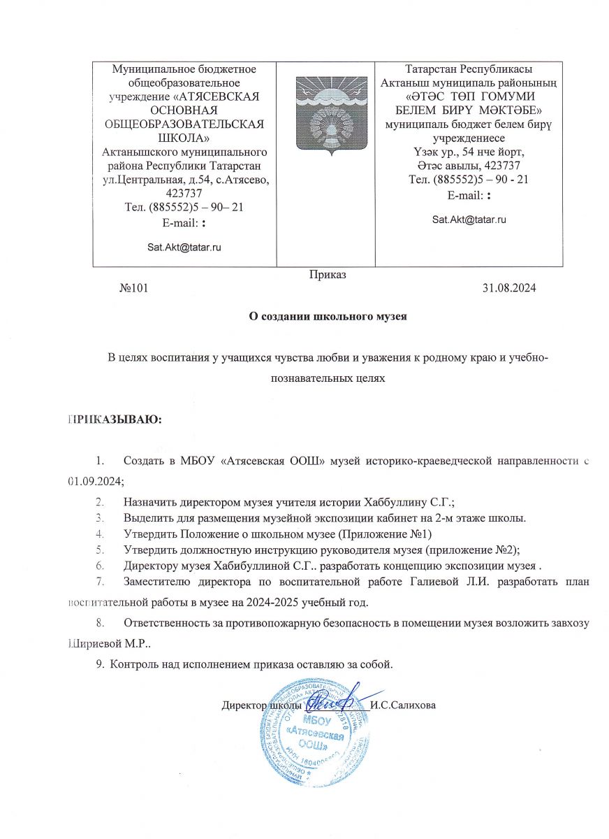 Муниципальное бюджетное общеобразовательное учреждение «Атясевская основная общеобразовательная школа» Актанышского муниципального района РТ/Татарстан Республикасы Актаныш муниципаль районының "Әтәс төп гомуми белем бирү мәктәбе" муниципаль бюджет белем бирү учреждениесе
