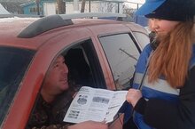 ЮИД отряды члены И.Гыйльманова машина йөртүчегә буклет таратты./Член отряда ЮИД И.Гильманова раздала водителю буклеты.