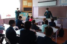 МЧС хезмәткәрләре – Рәшитов И.А., Арсланов М.Д. укучылар белән очрашу үткәрде. /Сотрудники МЧС Рашитов И.А., Арсланов М.Д. провели встречу с учащимися.