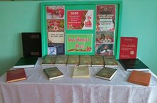 Мәктәптә “Ватанны саклаучылар елы”, “Бөек Җиңүгә – 80 ел!” һәм “Хәрби-патриотик айлык”ка багышланган күргәзмә эшли./В школе работает выставка посвященная Году защитника Отечества, 80-летию Великой Победы и