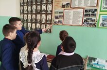 2 һәм 4 нче класс укучылары укытучы – Ч.Р.Шәвәлиева җитәкчелегендә “Без горурланабыз”, “Әфганчы авылдашларыбыз” стендындагы мәгълүматлар белән таныштылар, мәктәпнең “Туган якны өйрәнү” музей почмагында экскурсиядә булдылар./ Ученики 2 го и 4 го класса под руководством учителя Ч.Р.Шавалиевой ознакомились с информацией на стенде “Мы гордимся”, “Афганские односельчане”, провели экскурсию в школьном краеведческом музее.