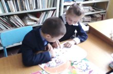 I класс укучылары белән мәктәп китапханәсенә экскурсия оештырылды. Яңа китаплар белән танышу барышында, өйрәнгән хәрефләрен тануда үзара көч сынаштылар: "серле хәрефләр"не эзләделәр. Барысы да яхшы белүләрен исбатладылар.