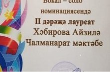 Мәктәбебездән А.А.Хәбирова “Вокал-соло” номинациясендә II дәрәҗә лауреат. Котлыйбыз!/А.А.Хабирова из нашей школы лауреат II степени в номинации “Вокал-соло”.