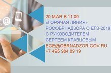 Горячая линия Федеральной службы по надзору в сфере образования и науки по вопросам проведения ЕГЭ и ОГЭ в 2019 году 20 мая, сообщает Рособрнадзор.