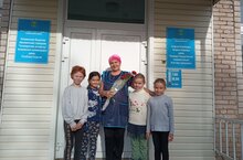 “Ак каен” балалар бакчасында тәрбияләнгән 2-3 нче класс кызлары кече тәрбияче Наилә апалары Кәбированы бәйрәм белән котладылар./Бывшие воспитанники детского сада “Ак каен” девочки 2-3 классов поздравили младшего воспитателя Наили Кабировой поздравили с праздником.