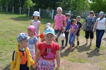 Бүген лагерь балалары мәчет һәм яңа медпункт ачу тантанасын карарга бардылар.