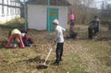 Сегодня уборка территории. Все классы интенсивно убирают свои участки.