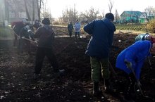 Бүген мәктәп бакчасында укучылар һәм укытучылар сарымсак утырттылар./В школьном саду школьники и учителя посадили чеснок.