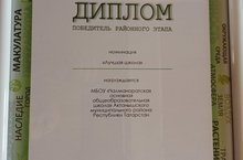 3 -4) IX класс укучыларының Россиякүләм ачык интернет-олимпиадасы. С.Х.Камалетдинов (VIII кл.) – I дәрәҗә Диплом, Н.Ш.Булатов (VIII кл.) һәм З.Д.Гәрәев (VIII кл.) - II Дәрәҗә Диплом. Укытучылары – Э.Х.Садыйкова.