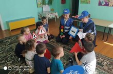 ЮИД отряды членнары нәниләрне юлда йөрү кагыйдәләре һәм билгеләре белән таныштырдылар./Члены отряда ЮИД ознакомили малышей с правилами дорожного движения и знаками.