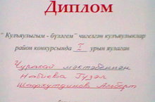 20 нче март көнне "Кулъяулыгым-бүләгем" - Ак Калфак район хатын-кызлар иҗтимагый оешмасы уздырган бәйгедә мәктәбебез укучылары - Набиева Гүзәл, Шавхутдинов Альберт уңышлы чыгыш ясадылар һәм 1 урынга ия булдылар.