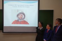 6 сыйныф укучылары беренче очучы-космонавт Юрий Гагаринның тормыш юлы һәм эшчәнлеге белән таныштылар, аның турында видео фильм карадылар.