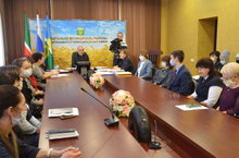 "Ел укытучысы - 2021" Бөтенроссия бәйгесенең муниципаль этабында җиңү яулаган татар теле укытучысы Миназова Р.Җ Актаныш районы башлыгы Энгель Фәттахов белән түгәрәк өстәл артында очрашуда катнашты.