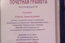 Актанышта "Ел укытучысы - 2020" бәйгесенең йомгаклау тантанасы булып узды. Бу бәйгедә безнең мәктәптән татар теле һәм әдәбияты укытучысы Салахов Р.З катнашып, 3 урынга лаек булды. Котлыйбыз!