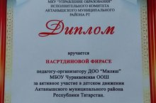 Бүләкләнүчеләр арасында безнең мәктәпнең педагог - оештыручысы Насртдинова Ф.М да бар.