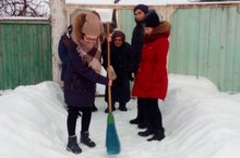 9 класс укучылары хезмәт ветераны Хайдаров Флүн абыйга ярдәм итәләр.