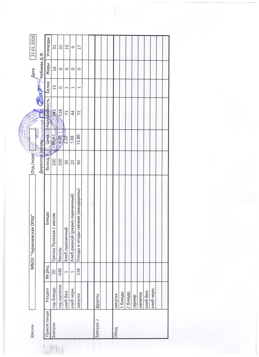Однодневные меню 2021-2022 учебного года