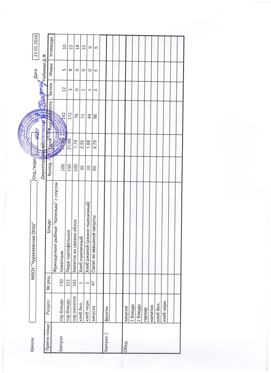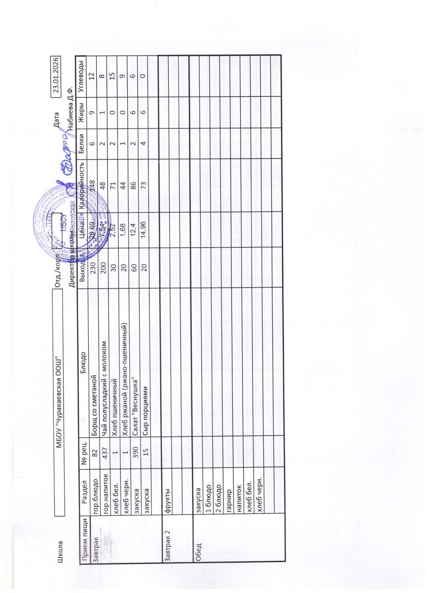 Однодневные меню 2022-2023 учебного года