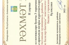 На августовском совещании работников образования района за достижение высоких показателей в рейтинге детских садов Актанышского района за 2021-2022 учебный год наш детский сад был награжден Дипломом II степени.