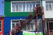 Балалар тиз генә киенергә, махсус баскычтан төшәргә өйрәнделәр.