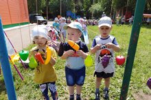 Цель: повысить интерес к физической культуре, создать положительный эмоциональный настрой, оздоровление детей силами природы (вода, солнце и воздух).Задачи: закрепить умения и навыки, полученные на занятиях, развивать способность проявлять выдержку, волю, уверенно действовать в коллективе, ориентироваться в пространстве, закрепить умения и правила поведения во время спортивных состязаний, эстафет и подвижных игр, развивать музыкально – ритмический слух, воспитывать доброту.