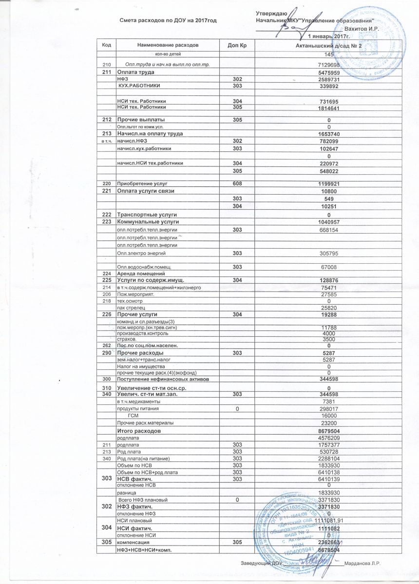 Отчет об исполнении учреждением плана его финансово-хозяйственной деятельности на 1 января 2017
