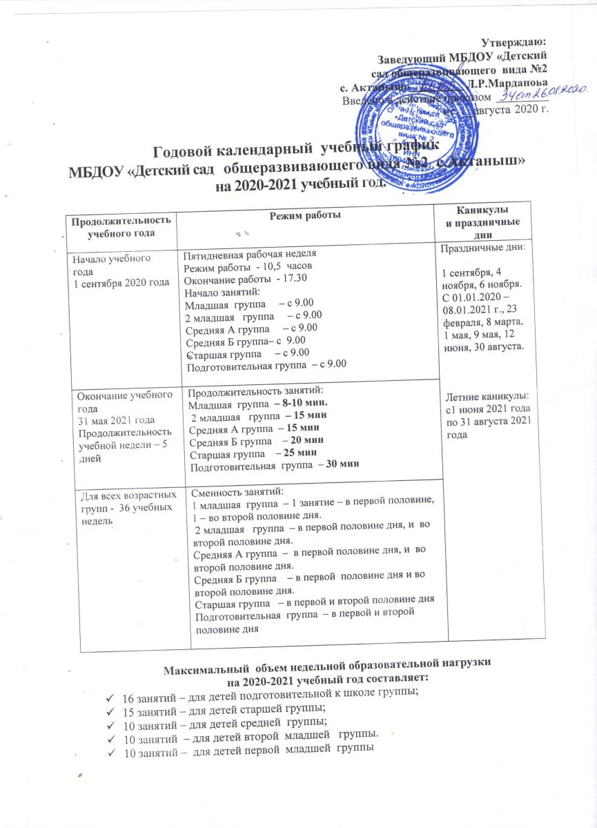 Годовой календарный учебный график на 2020-2021 уч.г.