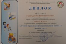 Балалар бакчалары педагоглары арасында үткәрелгән "Лучший проект профориентационной работы в детском саду" республика конкурсының район этабында музыка җитәкчесе Бадертдинова И.Р. -III урын, тәрбияче Ганиева Э.И.- III урынга лаек булдылар.