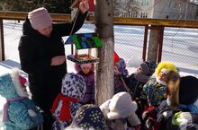 Урамда карлы, салкын кыш. Бу вакытта салкын җилләрне җиңеп, нәни канатларын җилпеп азык эзләүче кошларга бик кыен. Салкын кыш айларында безнең якларда кышлаучы кошларга ризык табу бик кыенга туры килә. Шуңа күрә икенче кечкенәләр төркеме балалары әти-әниләр ярдәме белән кошларга ярдәм итәргә булдылар - алар өчен җимлекләр ясап элделәр. Балалар тәрбияче апалары белән берлектә көн саен кошларга җимнәр сибәләр, кошларның җим чүпләгәннәрен күзәтәләр.