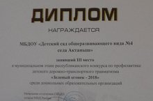 Балалар бакчасы "Яшел ут" - 2018 республика бәйгесенең муниципаль этабында катнашып, район балалар бакчалары арасында III урынга лаек булды һәм Яр Чаллы территориаль идәрәсенең Актаныш районындагы "Юл хәрәкәте куркынычсызлыгы" дәүләт бюджет учреждениесе тарафыннан диплом, кубок һәм велосипед белән бүләкләнде.