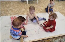 Как здорово рисовать на полу! Мы с детишками очень любим рисовать на растеленных обоях на полу, при этом малыши знакомятся с различными инструментами для рисования, запоминают цвета, стараются правильно держать карандаши. Ну и просто весело и с пользой проводим наши будни. Воспитатель: Шайхутдинова Гузель Робертовна