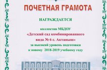 Яңа 2018-2019 уку елына әзерлек нәтиҗәләре буенча безнең бакчабыз җиңү яулады.