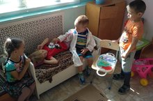 Уртанчылар төркеме балалары рольле-сюжетлы уеннарны яратып уйныйлар. "Ашыгыч ярдәм күрсәтү хезмэте" уены аларга бик кызыклы!