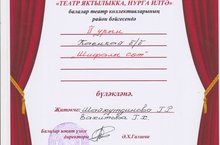 "Театр яктылыкка, нурга илтә" балалар театр коллективларының район бәйгесендә безнең балалар бакчасының зурлар төркеме балалары С.Сәүбанованың "Шифалы сөт" әкияте белән уңышлы чыгыш ясадылар. Театрны сәхнәгә тәрбиячеләр Шайхутдинова Г.Р., Вахитова Г.Х. лар әзерләделәр. Безнең балалар коллективы призлы 2 урынга лаек булды. Без аларны чын күңелдән бу зур уңышлары белән котлыйбыз.