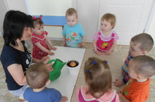 Балаларны үсемлекләрнең үсү этаплары белән таныштыру максатыннан без, ясле төркеме балалары суган утырттык.