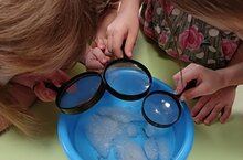 Без зурлар төркеме балалары белән карның чисталыгын тикшереп карарга булдык. Прогулкадан алып кергән карны савытка салып эрергә куйдык. Балалар йокыдан торуга савыттагы кар эреп суга әйләнеп бетә язган иде инде. Балалар савыт төбендәге пычыракны күреп шаккаттылар. Һәм: "Карны ашарга ярамый икән!" - дигән нәтиҗәгэ килделәр. Соңыннан балалар бик кызыксынып кар кристалларын лупа аша карадылар, аның матурлыгына сокландылар. Тәрбияче: Шәйхетдинова Г.Р.