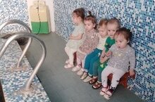 Бүген ясле төркеме балалары бакчагады бассейнга экскурсиягә барды. Алар бассейндагы суны күреп сөенделәр, су керү боҗраларын тотып карадылар. Шәфкать туташы Венера апага, тагын әзрәк үскәч, бассейнда су коенабыз дип сүз бирер группага кайттылар.