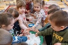 Сегодня мы с детьми второй младшей группы ознакомились со свойствами снега. Дети узнали, что снег тает и превращается в воду, имеет определённые свойства (белый, холодный, без запаха, снег можно красить). Закрепили культурно-гигиенические навыки (снег нельзя кушать, он грязный)