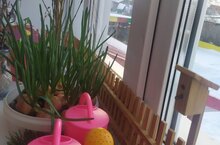 Зурлар логопед төркеменең тәрәз төбендә яз! Балалар утырткан суганнар кыяк чыгарды, ә юкә, миләш, карлыган, тал, каен агачлары бөре чыгарып, яфрак ярырга әзерләнә. Һәр көн балалар кызыксынып үзләре алып килгән агач ботакларын күзәтәләр, горурланалар. Тәрбиячеләре: Мөхәммәтова Л.Р.
