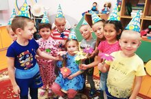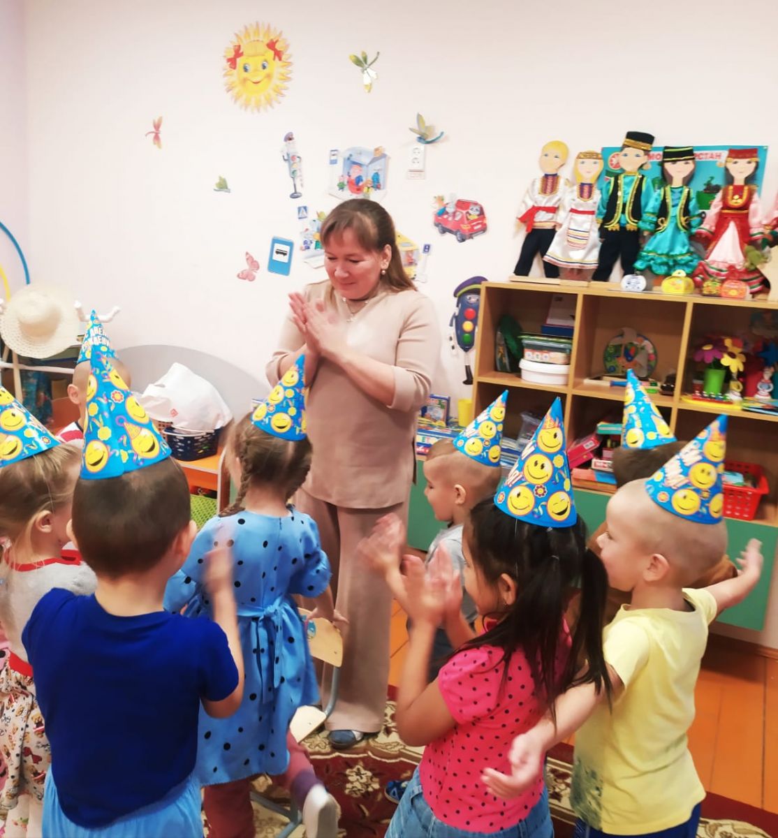 Весело проводим дни рождения детей, каждый ребенок передает товарищам свои добрые пожелания. Дети с удовольствием исполняют песню-танеө "Ак калач". Пусть наши дети будут здоровы!