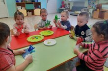 С детҗми первой младшей группы сегодня на занятии развивали мелкую моторику кистей рук с, в то же время укрепляя имеющиеся знания о цветах. Воспитатель: Салихзянова А.Ф.
