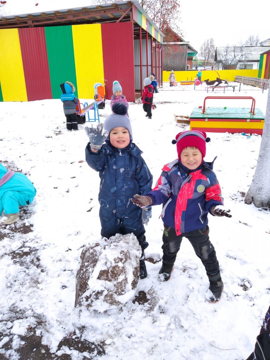 Сегодняшняя прогулка для детей второй младшей группы было незабываемо сказочной. Как только не играли дети с первым снегом - и шары катали, и весёлого снеговика слепили, и в снежки и в игру "Где чей след" поиграли. Так не хотелось возвращаться в группу. Воспитатель: Шайхутдинова Гузель Робертовна.