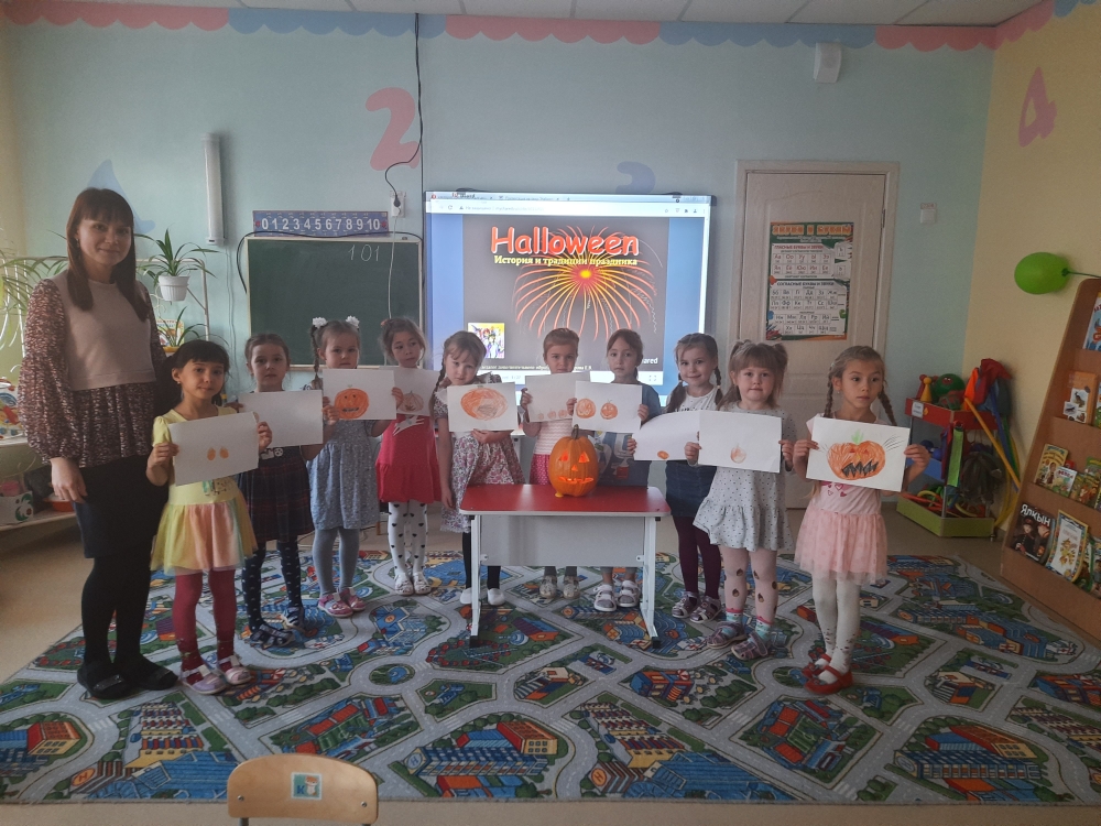 Бакчабызда, мәктәпкә әзерлек һәм логопед мәктәпкә әзерлек төркемнәрендә, балалар тарафыннан бик кызыксынып кабул ителгән, "Хеллоуин" бәйрәменә багышланган шөгыль уздырылды. Хеллоуин - чит милләтләр һәм аларның гореф-гадәтләре белән таныштыручы бәйрәмнәрнең берсе булып тора. Бәйрәмнең төп символы - кабак. Ул балаларда зур кызыксыну уятты. Шул рәвешле, бәйрәмнең символына карата, төрле кызыклы рәсемнәр ясалды.
