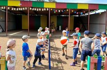 Саф hавада вакытны күңелле үткәрү максатыннан, мәктәпкә әзерлек төркеме hәм 1 нче кечкенәләр төркеме балалары белән бик күңелле уен үткәрелде. 2 нче кечкенәләр төркеме балалары белән велосипедта йөру кагыйдәләрен дә искә төшердек.