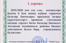 Актанышның 310, ТАССРның 100 еллыгы кысаларында уздырылган бәйгедә бакчабыз җиңү яулады. Районыбызны төзекләндерү, чистарту, яшелләндерүгә куйган хезмәтебез районыбыз Башлыгы тарафыннан рәхмәт хатына лаек булды.