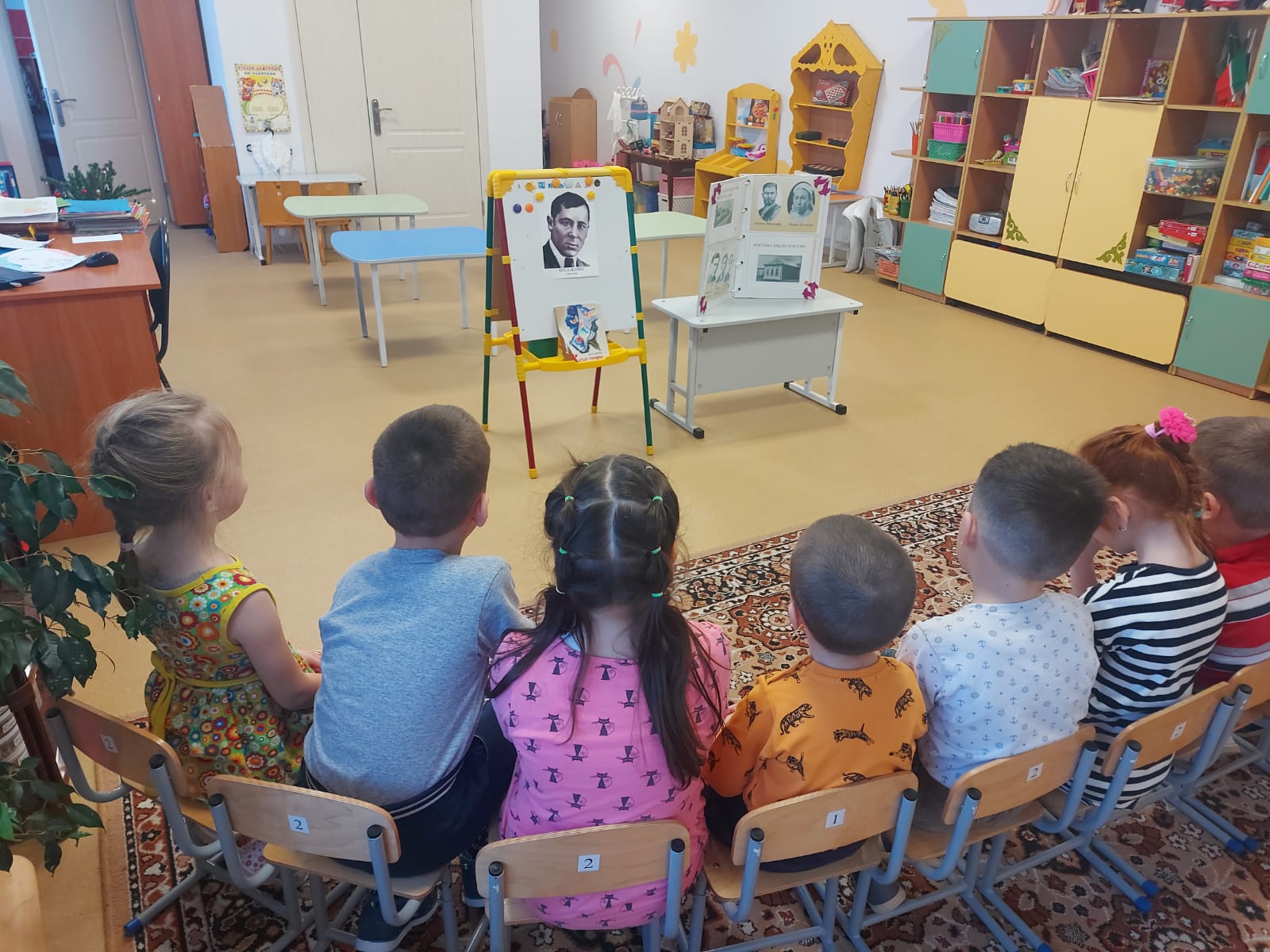 В старшей группе сегодня также состоялась беседа, посвященная жизни и творчеству поэта-героя Мусы Джалиля. Воспитатель: Салихова М.М.