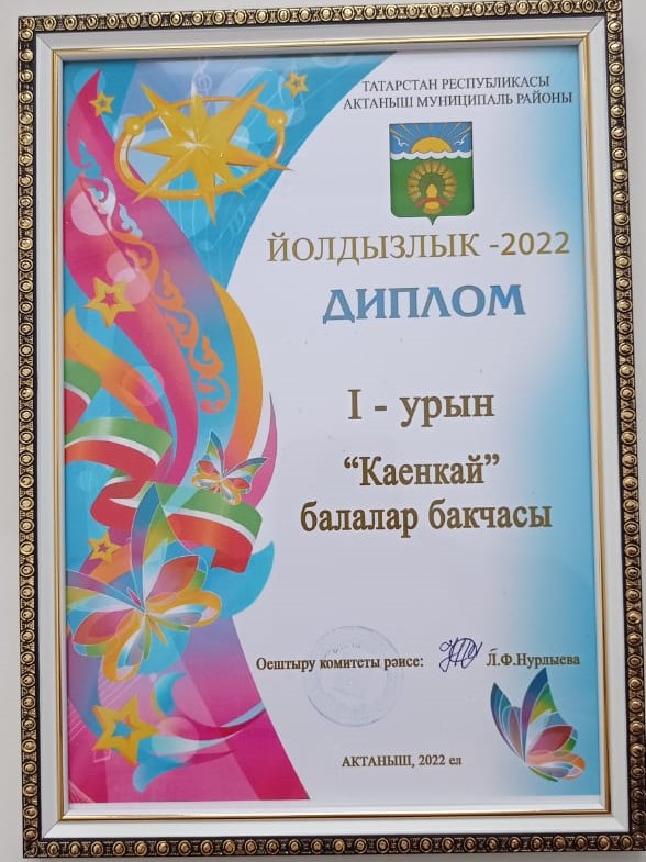 Опубликовано: 05.03.2022"Йолдызлык-2022" республика фестиваленең район турында район үзәге балалар бакчалары арасында "Каенкай" балалар бакчасы беренче урынга лаек булды! Әлеге зур җиңүне яулада хезмәт куйган балаларыбызга, педагогларга, ата-аналарыбызга зур рәхмәтебезне белдерәбез!