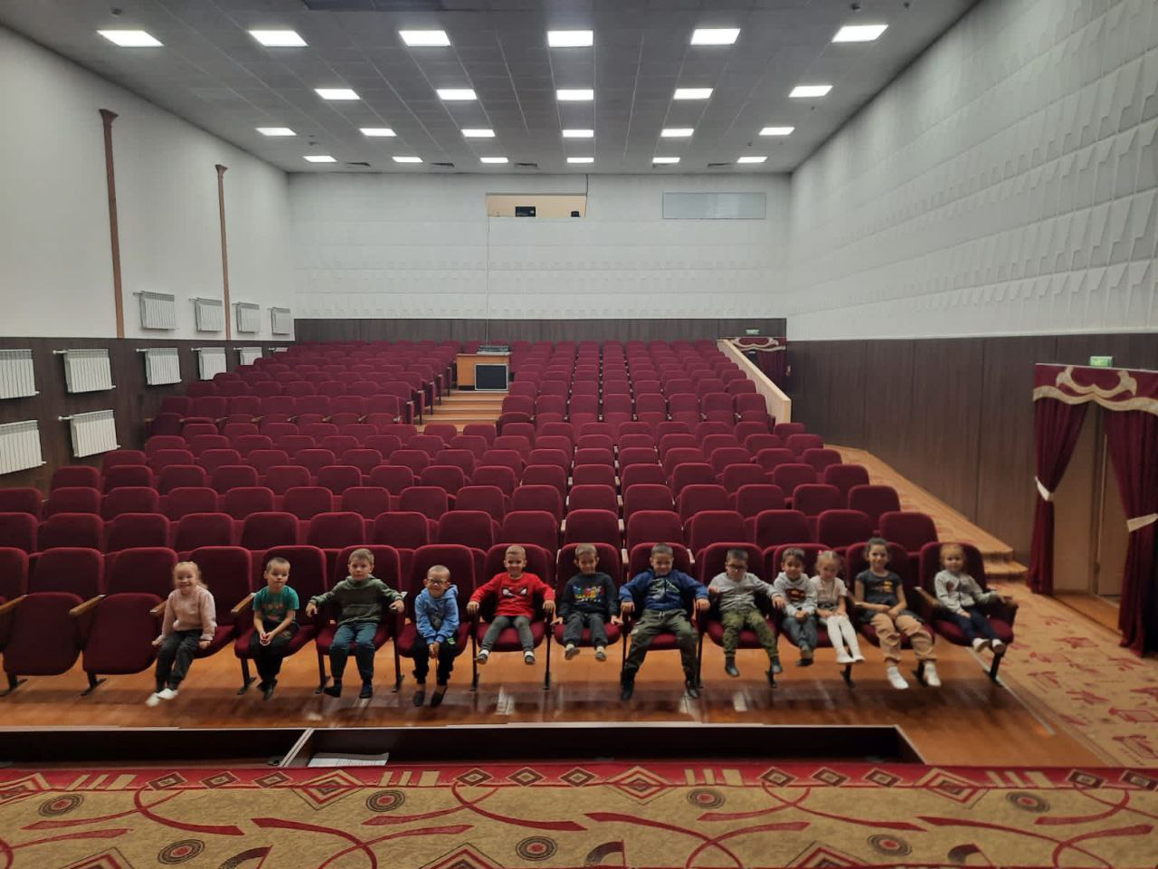 Опубликовано: 26.09.2022Зурлар төркеме балалары тәрбияче Насрыева Л.Н. һәм тәрбияче ярдәмчесе Газизова Г.Ф. белән берлектә “Агыйдель җыр һәм бию” ансамбле бинасына экскурсиягә бардылар. Балалар биюче һәм җырчы артистлар, аларның концертларга ничек әзерләнүләре белән таныштылар. Шулай ук костюм бүлмәсендәге матур кулмәкләрне күреп, тамашачы залындагы канәфиләргә утырып хозурландылар. Экскурсия бик эчтәлекле, кызыклы, файдалы булды.